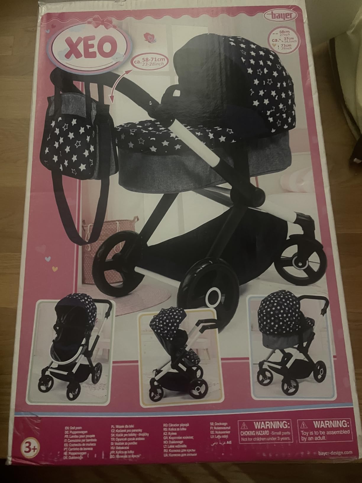 El paquete incluye Cochecito de muñeca Combi Xeo con Bolsa. Cuenta con una valoración de 4.6/5 en Amazon basada en 430 opiniones.