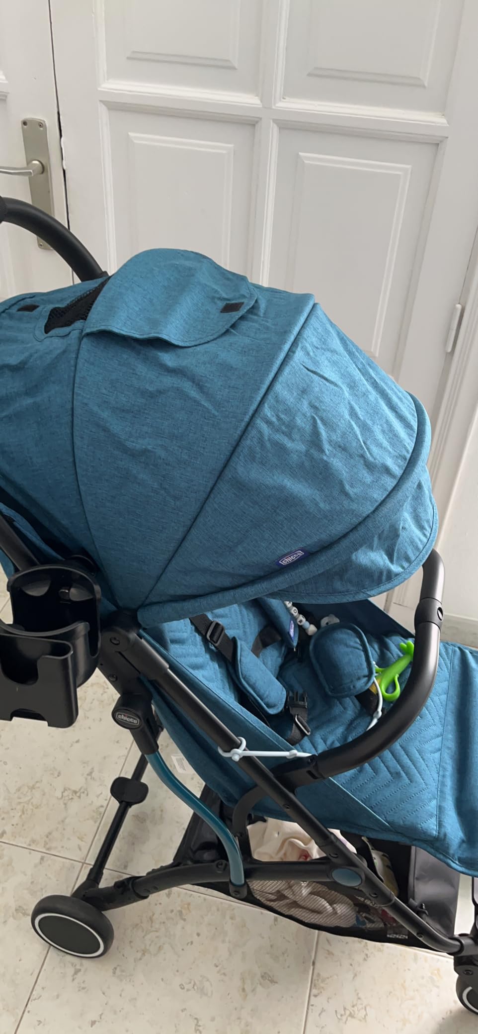 Al quedarse plegado tiene un tamaño tan compacto que en la caja viene totalmente montado salvo por las dos ruedas de delante, que sólo hay que encajar. Calidad Chicco. Detalles de buen hacer por todos lados. Pero lo más importante es la facilidad de manejo y para plegarse (con una sola mano). Además tiene un color azul tejano precioso!!!