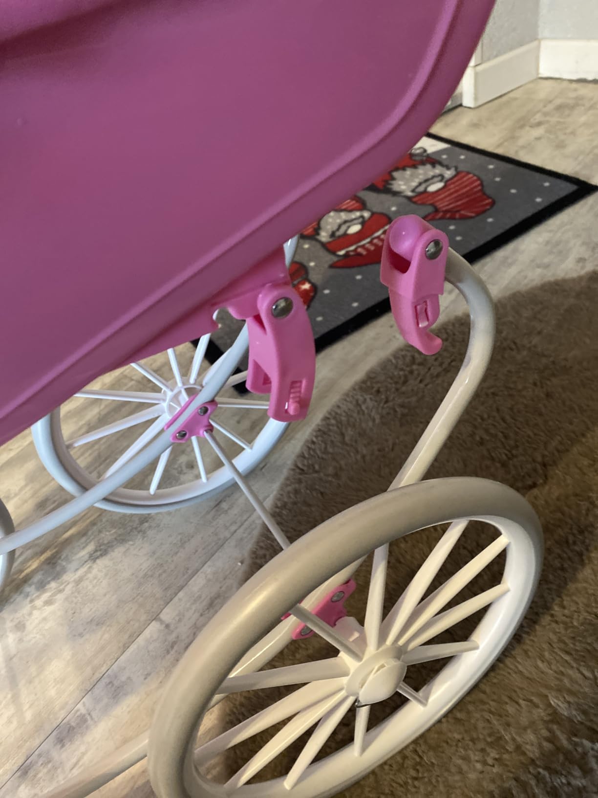 Bonjour j’ai un problème avec cet article c’était pour le Noël de ma petite donc monter hier soir eg il y a un endroit où impossible de cliquer des roues à la poussette