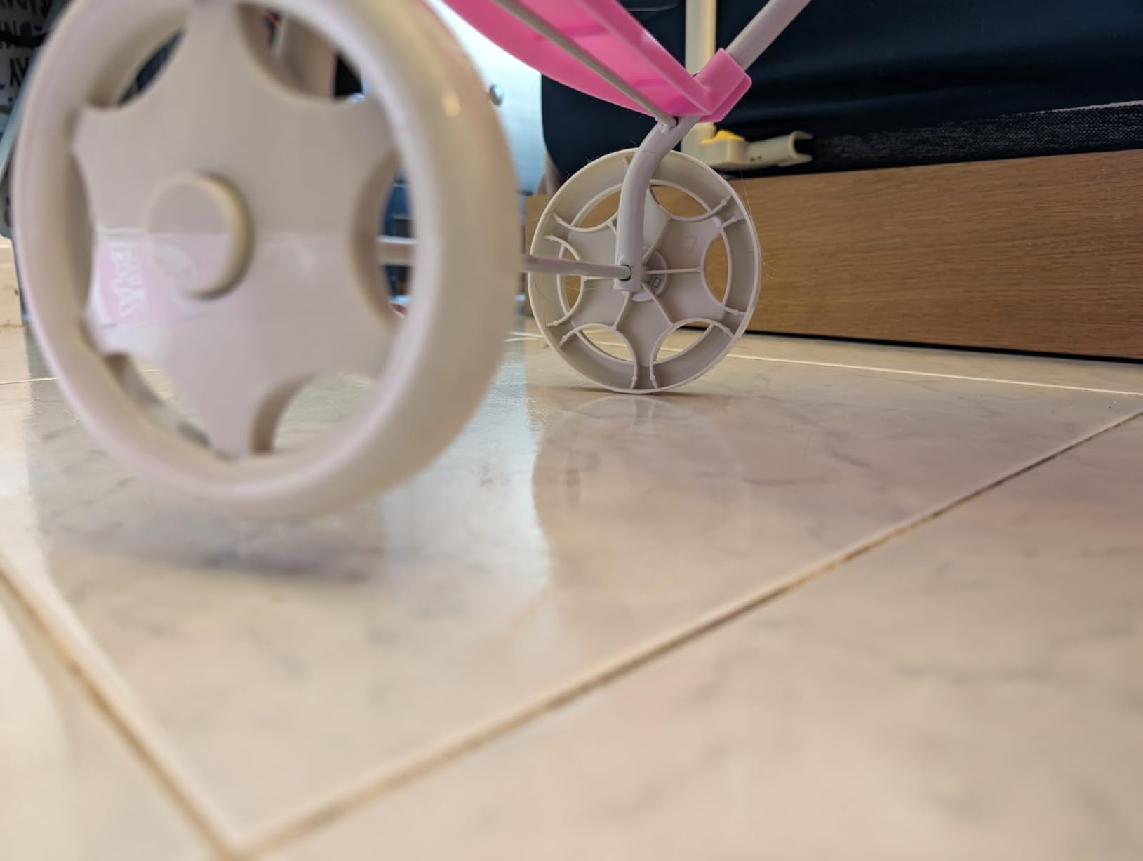 Actualización: le he bajado una estrella porque ahora una rueda se cae y es inutilizable. Una pena, de verdad. El carrito es bonito y exactamente como en la foto, es cierto que no son materiales de altísima calidad, pero por el precio está mucho mejor construido que otros un par de euros más baratos. El único problema es que ha llegado desbalanceado y una de las ruedas “flota” como se ve en la foto, por lo que empujarlo no es tan cómodo o fluido como debería. Hacer la devolución y recomprar sería inconveniente porque tardó casi una semana en llegar, ahora está a un precio más alto y mi hija está el muy ilusionada aunque no funcione correctamente. Una pena, si hubiera llegado bien sería exactamente lo que buscábamos.