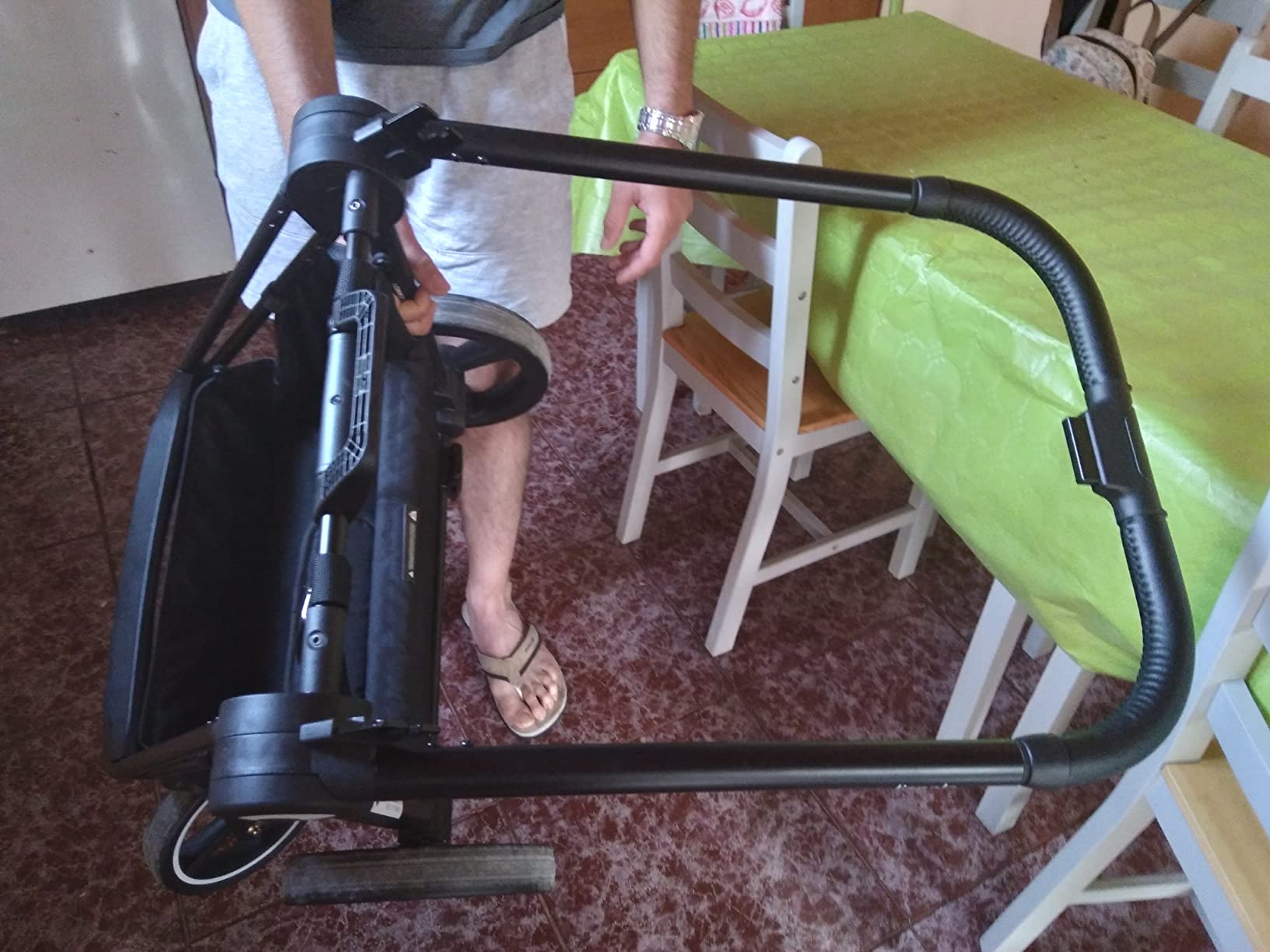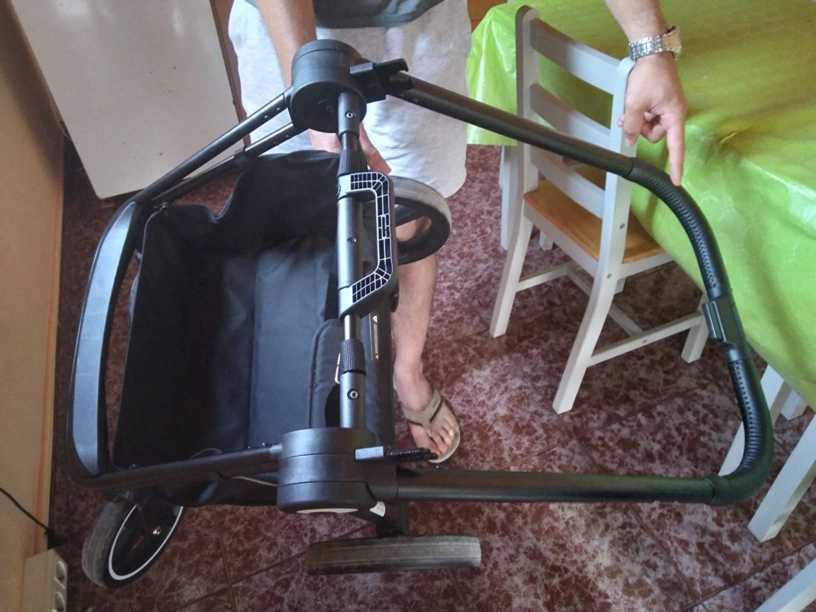 Hola. Ayer usando la silla como siempre. A la hora de plegarla para introducirla en el coche. La estructura de la silla no nos dobla. Adjunto fotos de comprobación conforme no nos dobla. Porfabor. Agradecería si fueran tan amables de darnos una solución. Un saludo